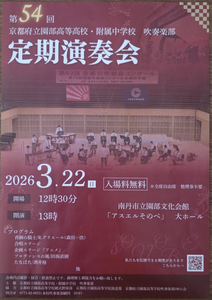 園部高校・附属中学校 吹奏楽部第54回定期演奏会 開催のお知らせ